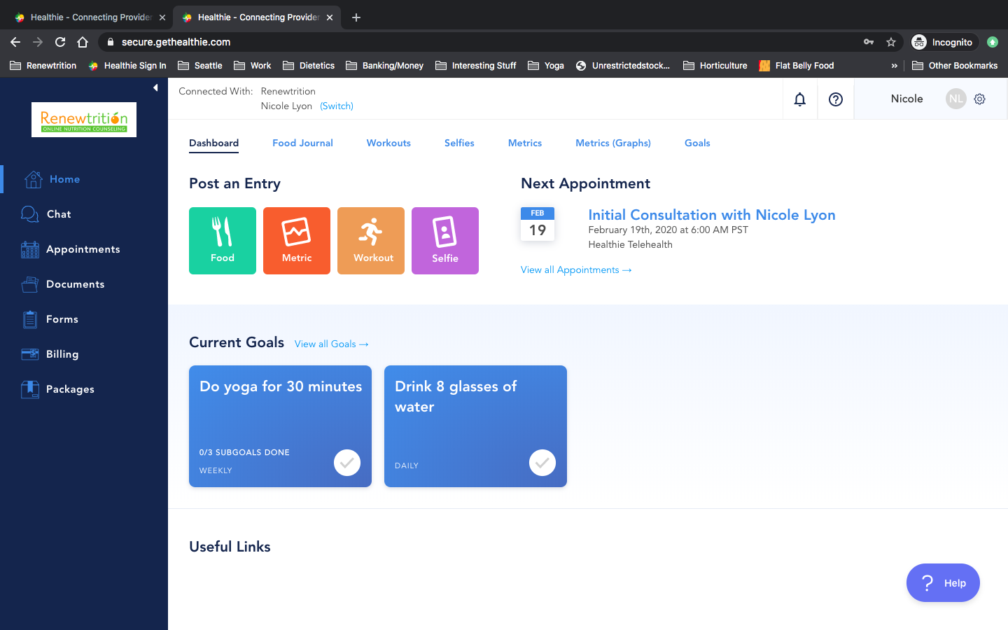 Healthie allows you and your provider to track a lot of useful information in one place: